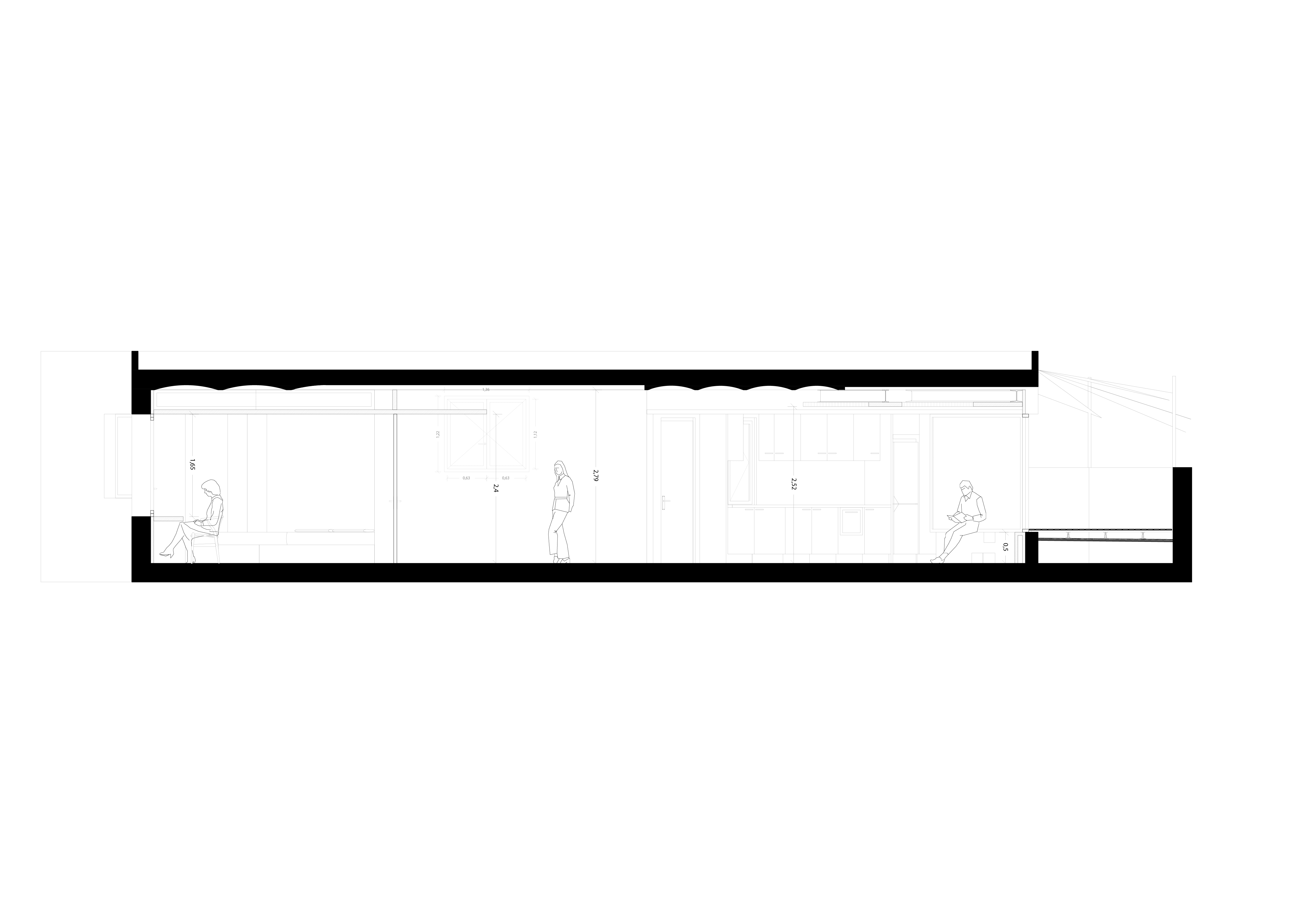 The particular shape of the floor plan, where triangular relationships abound, inspires the main formal idea: the different fixtures (kitchen, washroom, cupboards) will be arranged accentuating the triangulations that will be reinforced through a series of shelves at different levels. On a material note, the ceiling vaults are recovered, establishing a “mirrored” effect with the new ceramic flooring while all the rest is painted with the neutral luminosity of white.